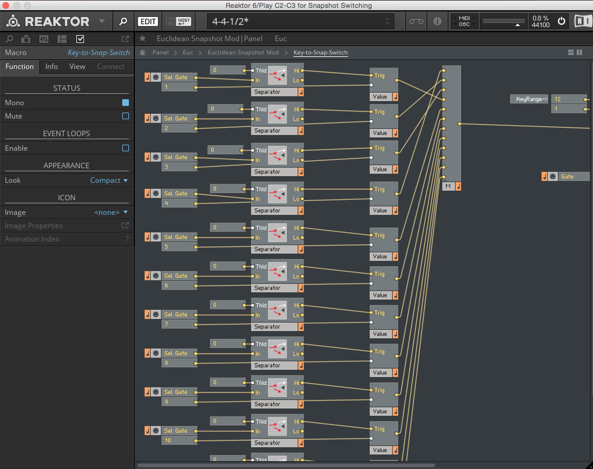 As mentioned in the talk the sequencing abilities of Reaktor is one of its most over looked features but given its integration with the outside world of midi and cv it could be one of the most interesting uses of Reaktor. In the Eurorack space there are a lot of great sequencers like the Tiptop Audio Circadian Rhythms but in the future more Reaktor tools could sit along side or replace some of the hardware alternatives and with some controller mapping they might even be nicer to use.
