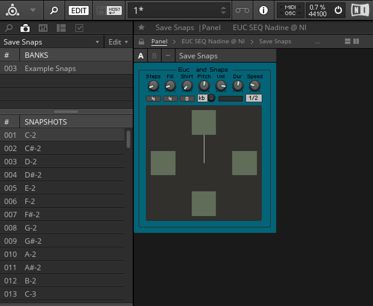 Tried to send midi to another Reaktor ens but can’t get this EUC Seq to generate midi by itself. I recorded some midi notes into a clip and that gets to the Reaktor ens (Photone) but nothing from the Euc Seq itself. Is there a setup guide somewhere?