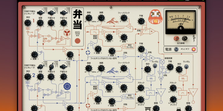 Feedback networks, unstable oscillators, shaky fat quivering filters, distorted mayhem, a bunch of labels in Japanese, a bunch of switches and knobs and a tape recorder – Bentō is a delight of software madness. It’s a delicious meal of noise.