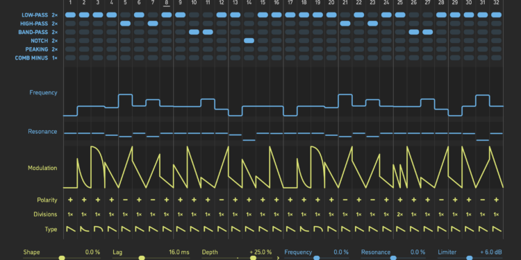 The simple, immediate UI of Cluster, the fourth plug-in in Sinevibes’ Dynamic Collection, belies a deep engine. Yes, this is a multi-filter with a sequencer, and yes, with the same ability to sketch in ideas quickly or roll the dice. But you can push the filters inside to open up worlds of sounds.