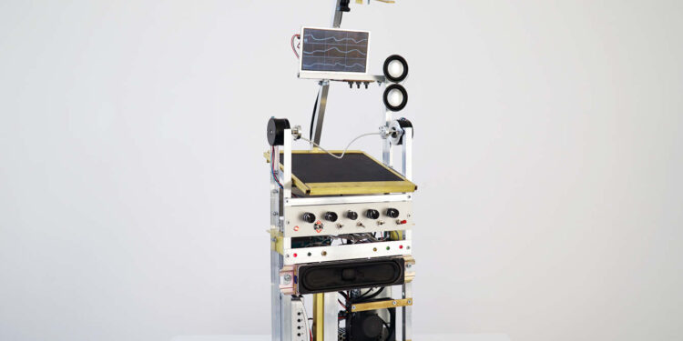 Volnovod is a robot sculpture that uses wire to make sound visually