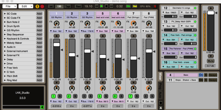 A totally free DAW and live environment, built in SuperCollider: LNX_Studio