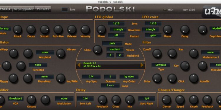Podolski is a Free, Full-Featured Virtual Analog Synth Plug-in from Urs Heckmann [Mac, PC]