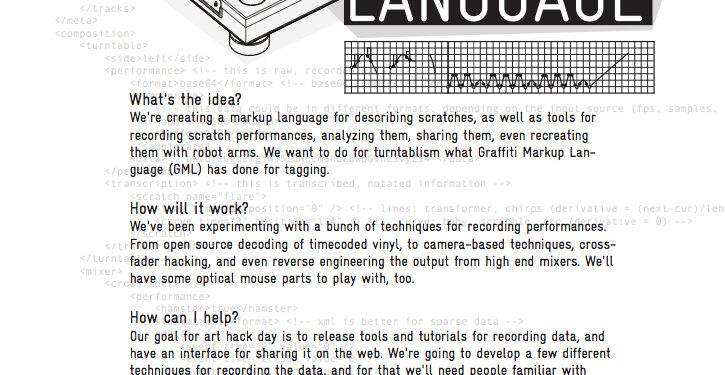 Scratching, captured. Photo (CC-BY-SA) karl sinfield / sindesign. Add this to the Internet of Things: imagine data recording scratching and scratch performances. Technologists Jamie Wilkinson, Michael Auger, and Kyle McDonald propose a new way of storing scratch moves as data. They’re not just working in traditional ways, either: they’re hacking turntables and optical mice and […]