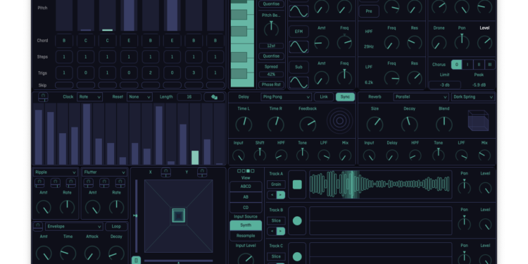 From the creator of Strokes, Stacks is a unique 4-voice wavetable morphing polysynth combined with a 4-track granular looper. But that description doesn’t really do it justice: modeling and digital grunge combine to make a raunchy instrument that behaves like an experimental studio.