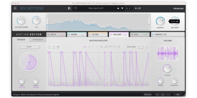 If you like your effects with a heaping side serving of envelopes and modulation, MOTIONS is for you. Triggers and dynamics, texturizers and distortion, filters and panning, and a whole lot of tools for creating shapes and rhythms combine in a semi-modular multi-effects that just won’t sit still. But – that doesn’t mean you can’t use it for precise and subtle effects or skip the over-the-top stuff. Let’s explain.