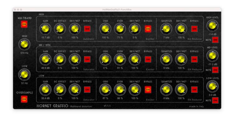 Here’s another freebie for you from Italian plug-in maker HoRNet, if you act fast. Graffio is 3-band (or fullband) distortion and saturation with switchable excited and bitcrusher.