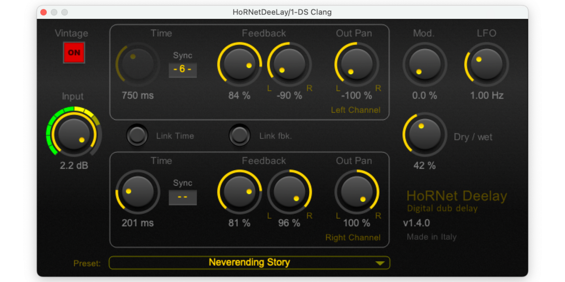“Made in Italy,” HoRNet DeeLay is just a good, simple, vintage-style digital dub delay plug-in. It runs on modern systems, too, but – with a little bit of extra effort on macOS. This deal runs today only, Tuesday September 5 Italy time; here’s how to grab it and make use of it.