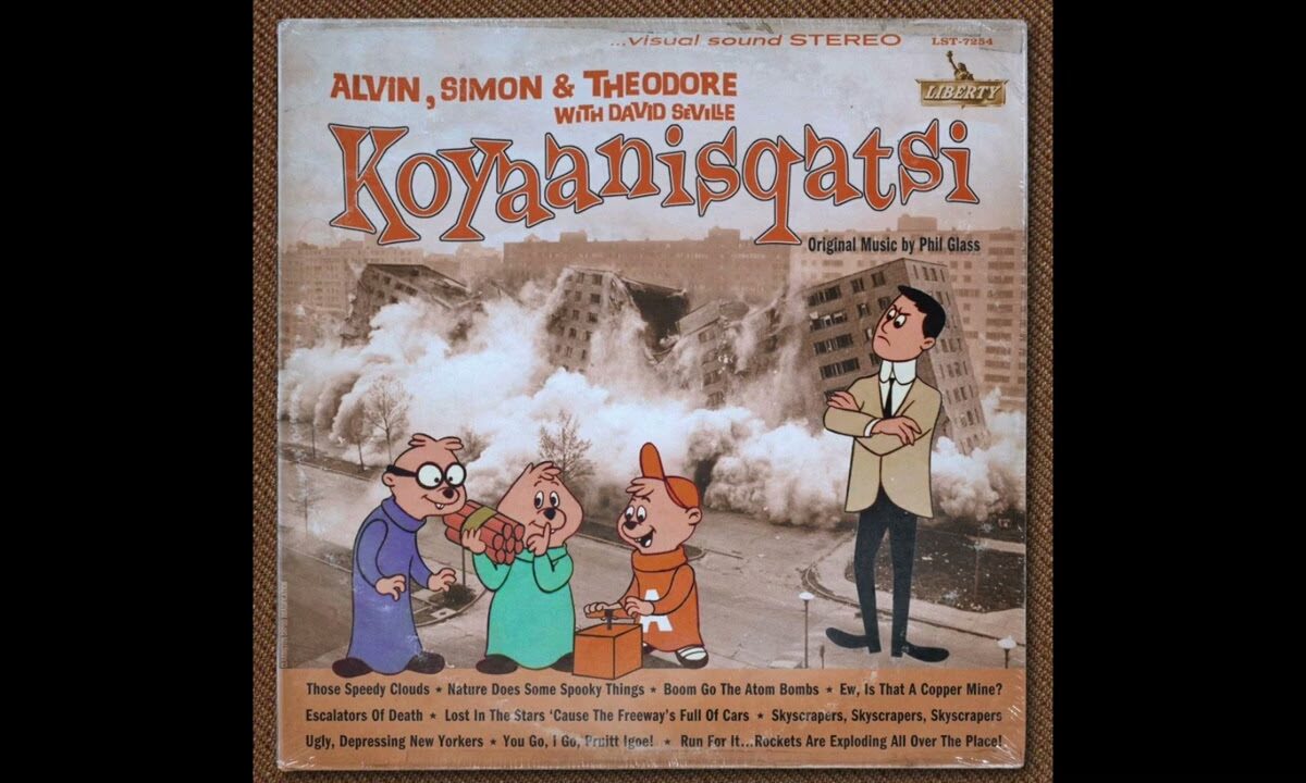 Philip Glass’ score for 1982’s Koyaanisqatsi is deeply moving, sombre, arresting – but have you really even heard it until you’ve heard it performed by Alvin, Simon, Theodore?