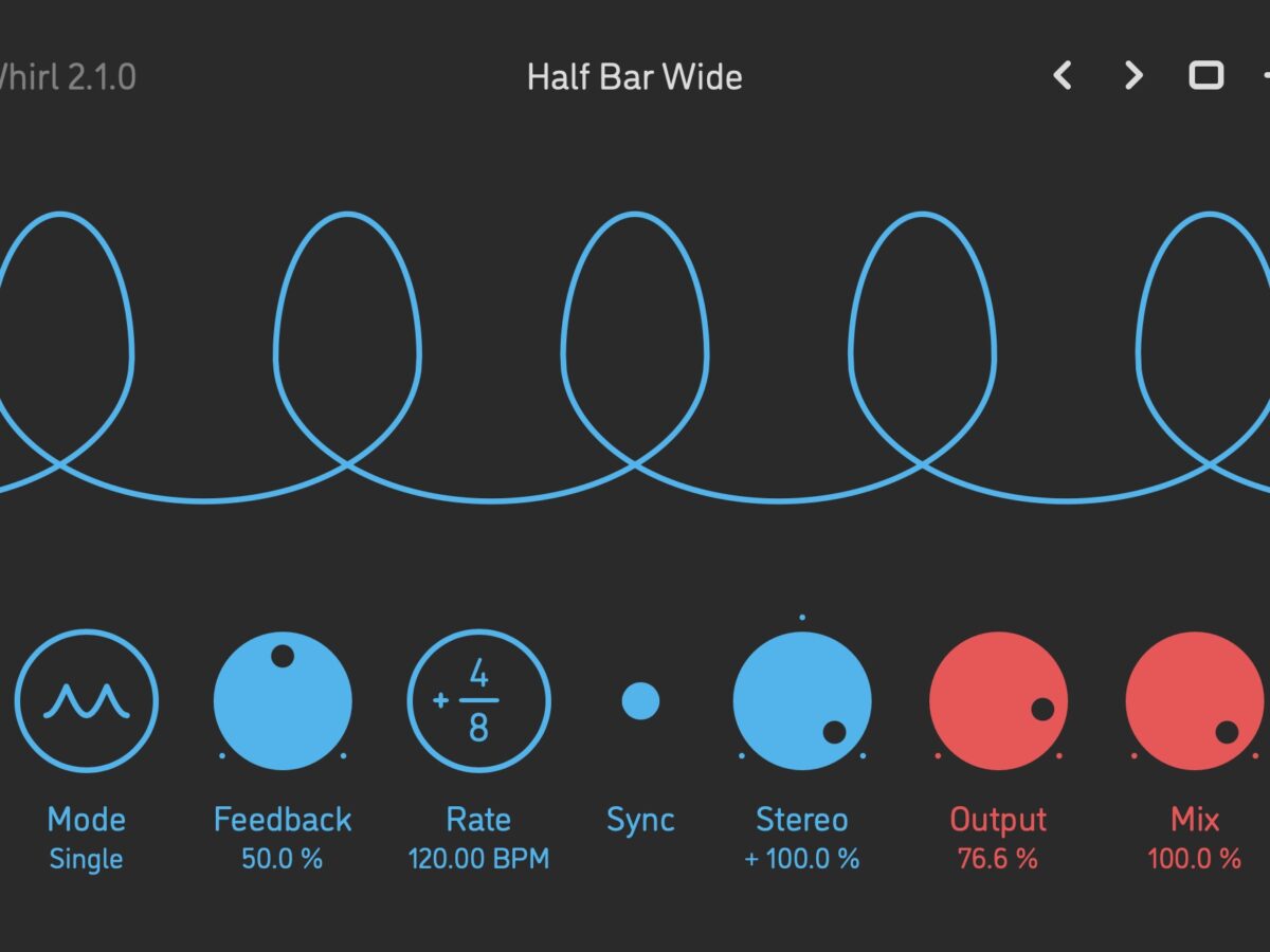 Whirl, the delightful barber-pole phaser effect (and its seemingly endlessly swirling peaks) now has added two crucial features: syncable frequency, and bidirectional stereo width. That makes this already terrific and accessible effect tool even more useful.