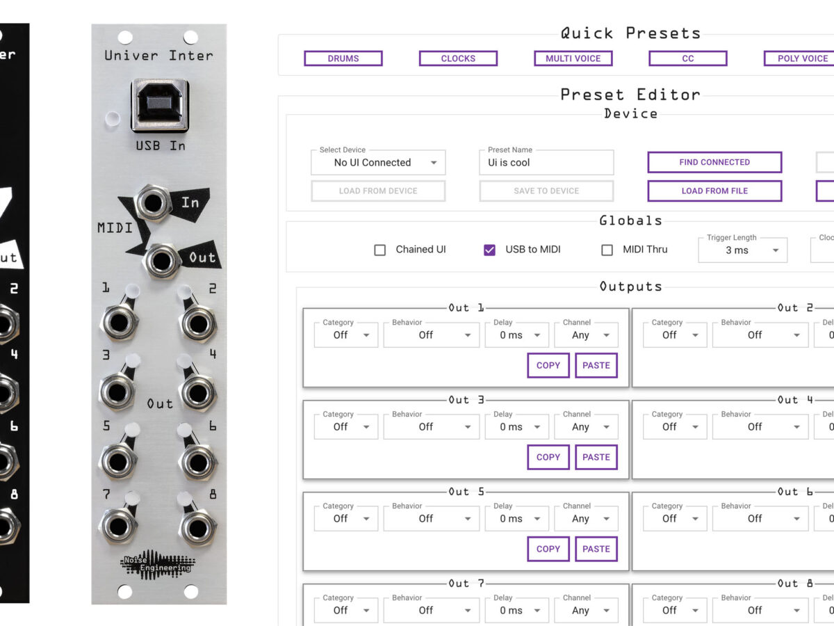 Take 6HP of Eurorack space, add MIDI in and out, USB MIDI, and 8 outputs – then have those outs do whatever you want. It’s Univer Inter, or “UI” for short – and crucially, it does have its own UI, via a powerful Web configuration tool.