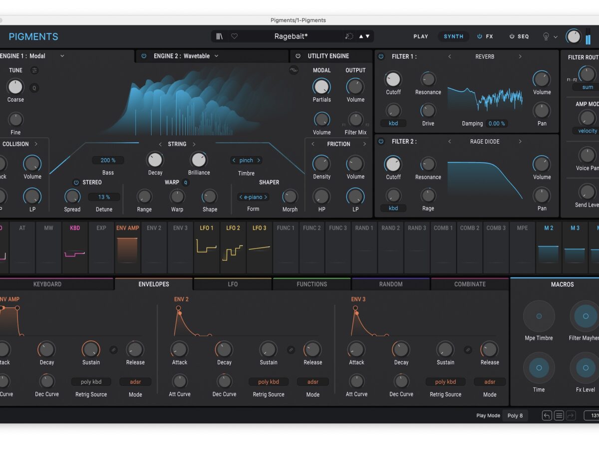 Bonkers new filters? A Play mode everyone will actually want to use? Yeah, December isn’t done with you yet, synth fans. Meet the new Pigments 7 with Rage, Ripple, and Reverb filters, Corroder effect, improved amplitude envelopes, FM modulation on the filter, and more.