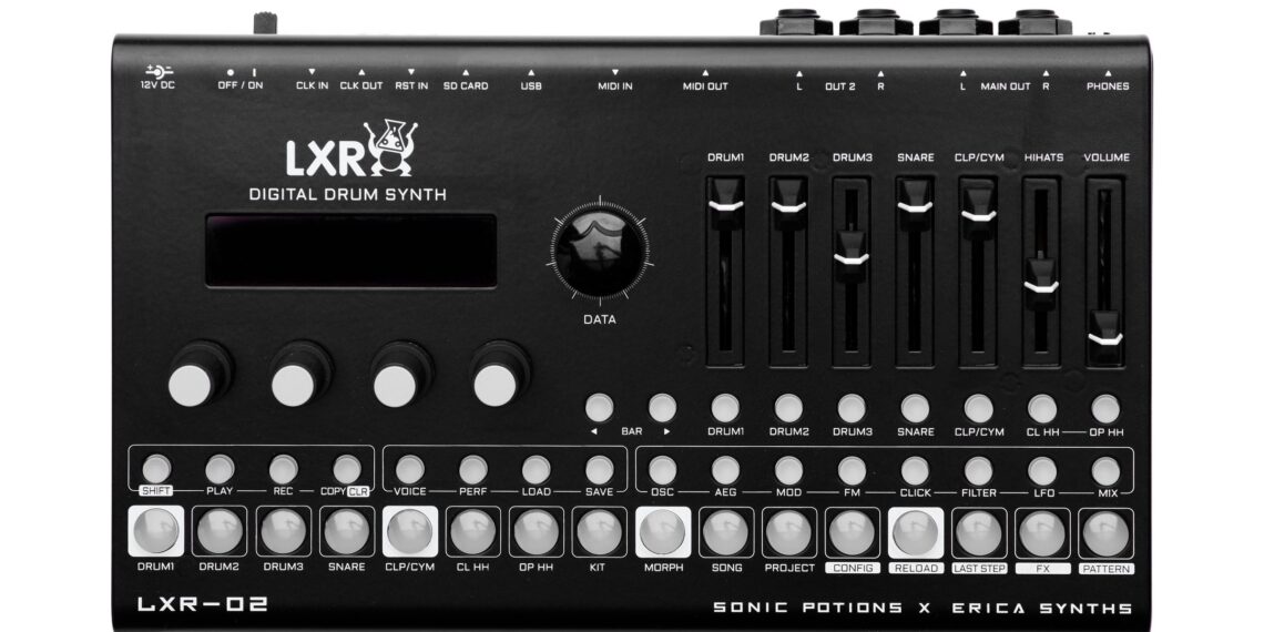 The cult classic Sonic Potions LXR-01 kit finally gets a worthy follow-up – the LXR-02, made in collaboration with Erica Synths. It’s a digital drum synth + FX + sequencer in one very compact unit.