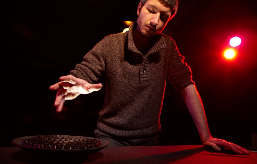 Here’s how interfaces normally break down. You’ve got your conventional, tactile interfaces, like a knob. You’ve got your touch interfaces, which lack tactile feedback (you touch them, but they don’t push back). You’ve got your gestural interfaces, which have you waving your hands in the air without touching anything and without any tactile feedback. (They’re […]