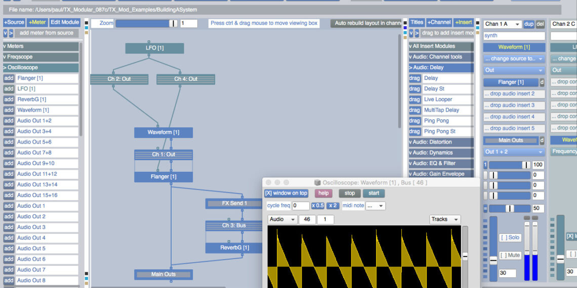 Granulators, drones, mixing, synths, effects, control, and on and on – TX Modular is an insanely huge set of tools, and the cost is zero.