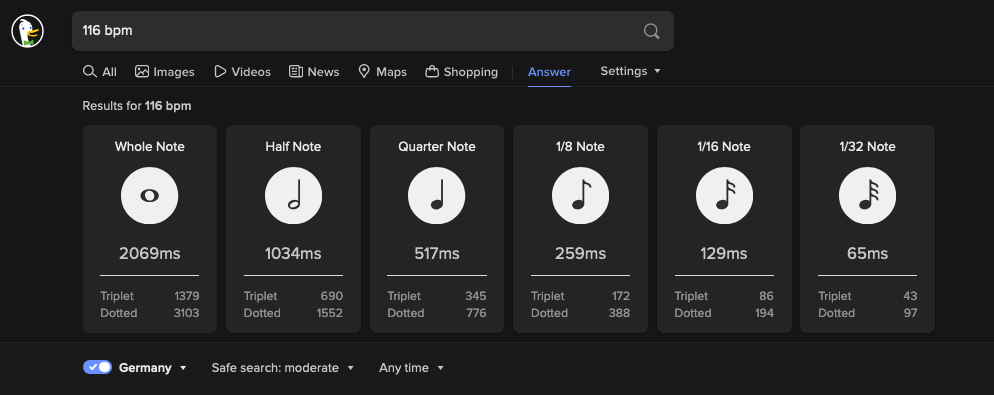 Another reason to switch search engines – privacy-centric alternative DuckDuckGo also has a clever little bpm calculator built in.