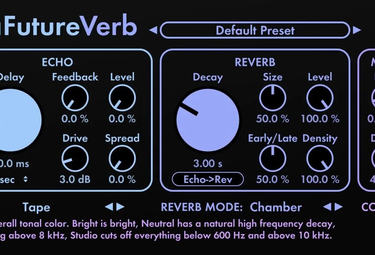 We don’t need another great reverb, let alone another great Valhalla reverb/echo. But we get one anyway. Sean Costello and Valhalla say this one is focused on transparency and realism — plus modulation and a bunch of echo modes when you want them. The now is FutureVerb.