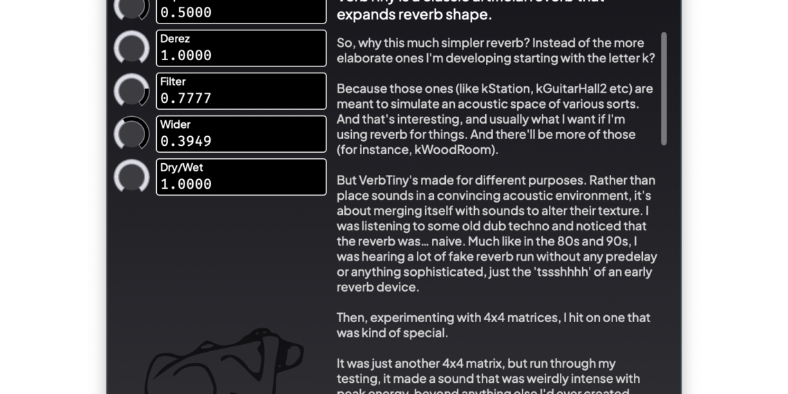 Chris Johnson, aka Airwindows, continues to share his love for DSP with free tools, open source code, and elaborate discussions of the joy of crafting reverbs. So just in case you don’t feel blessed enough with free effects after SuperMassive’s new Sirius reverb/delay, here’s the tiny and the thick in all-new Airwindows editions. And they’ll even run in VCV Rack or on a Raspberry Pi.